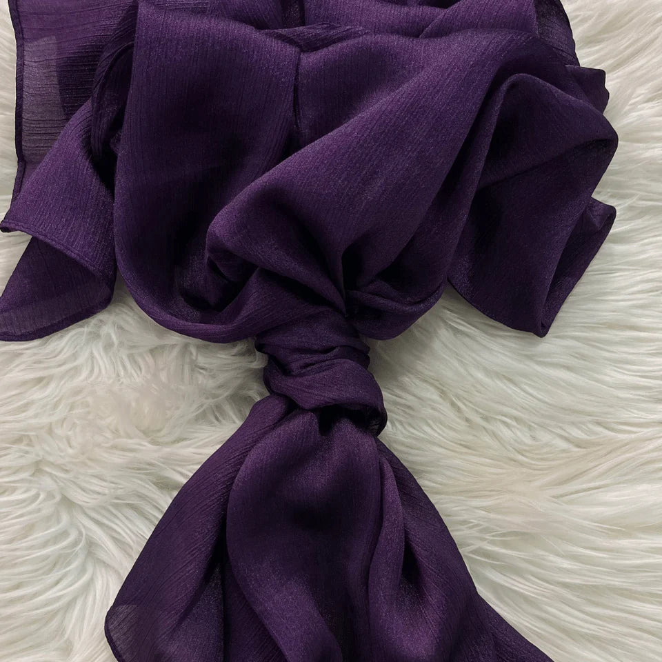 Crinkle Silk Hijabs! Made from high-quality silk fabric with a beautiful crinkle texture, these hijabs add a touch of sophistication to any outfit. Lightweight, breathable, and incredibly soft, our Crinkle Silk Hijabs are perfect for special occasions or everyday wear. With a stunning drape